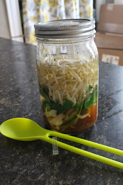 3.) Noodle soup in a jar (a.k.a. travelling noodles). It's amazing. It really does taste like fancy Asian noodle soup. I did realize when I put it together though, it's EXTREMELY high in sodium. So maybe this particular recipe will be a "for special occasions" recipe, and I'll play around with it for future weeks' lunches!